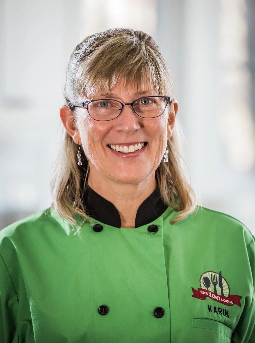 Executive Chef Karin Eckert is a certified Nutrition Therapy Practitioner and Natural Foods Chef, trained at the Nutrition Therapy Institute in Denver.